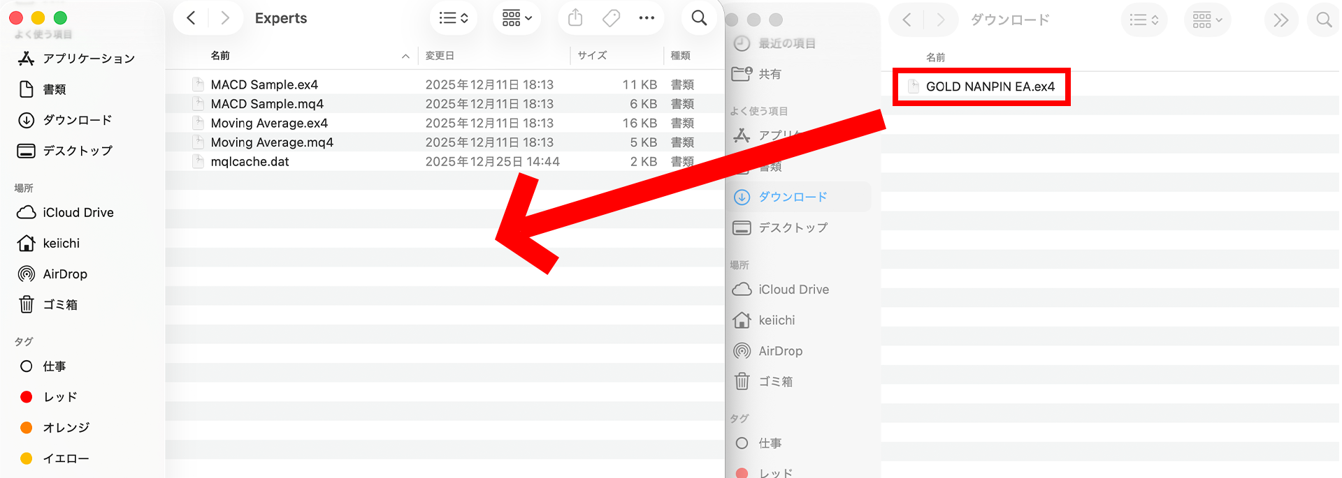 「Experts」のフォルダが開いたら、この中にEAをコピーします。