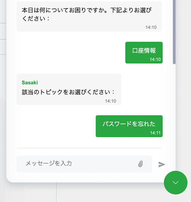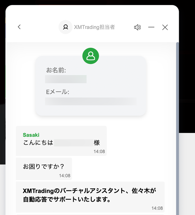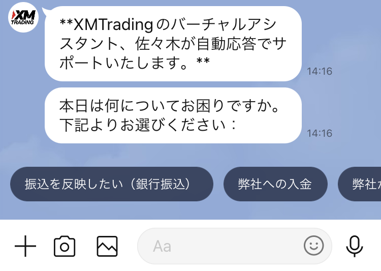 ライブチャットが開始すると、XM Tradingのバーチャルアシスタントが登場して、自動応答でサポートしてくれます。