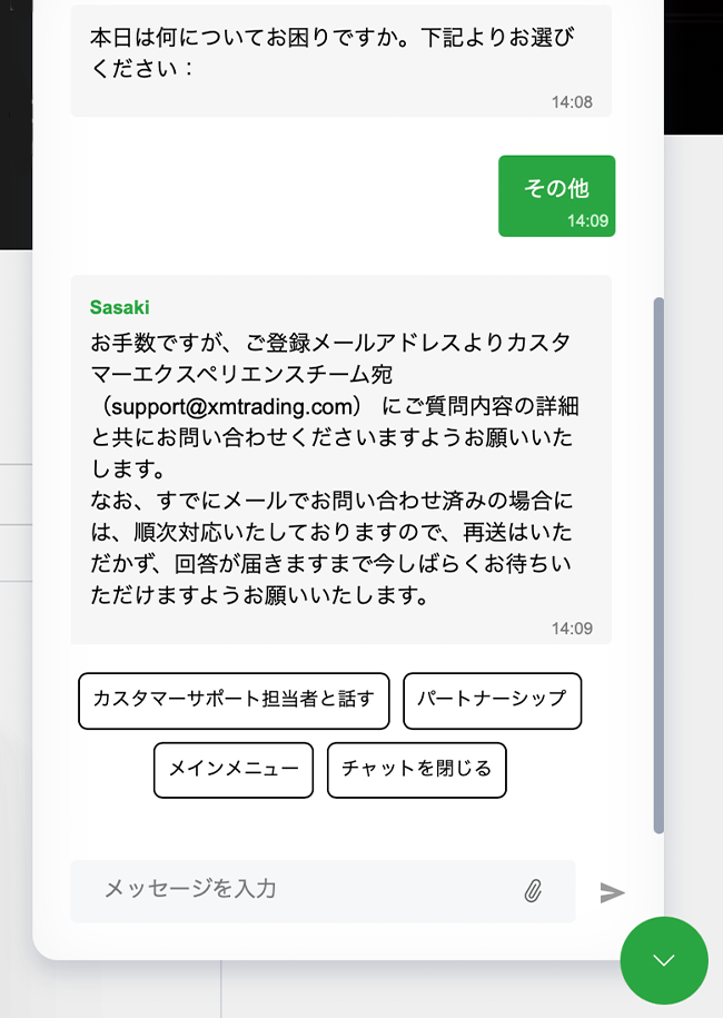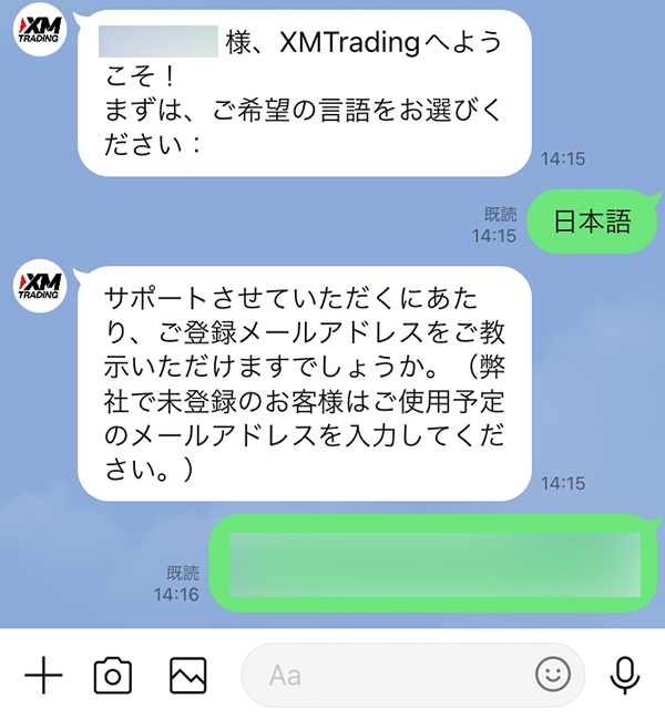 XMのチャット・LINEでの問合せは、すぐに返事が来るのでメールに比べてすごく早いです。