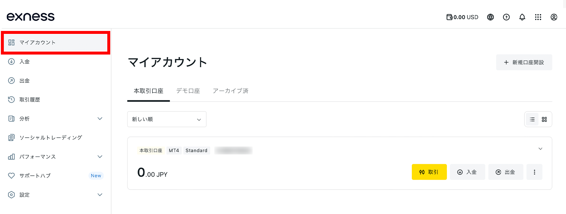 Exness(エクスネス)の設定レバレッジの確認は、パーソナルエリアの「マイアカウント」にて行うことができます。