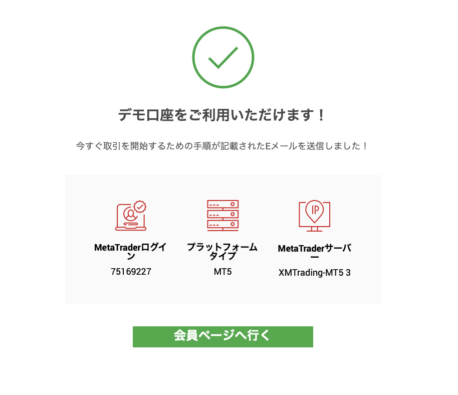 「デモ口座を利用いただけます」という画面が表示されたら作成完了です。
