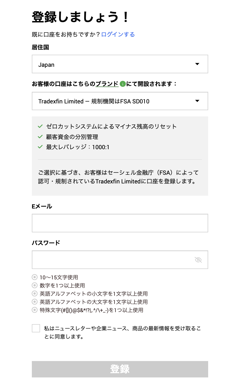 まず、XMの新規登録ページを開いて新規登録を行います。