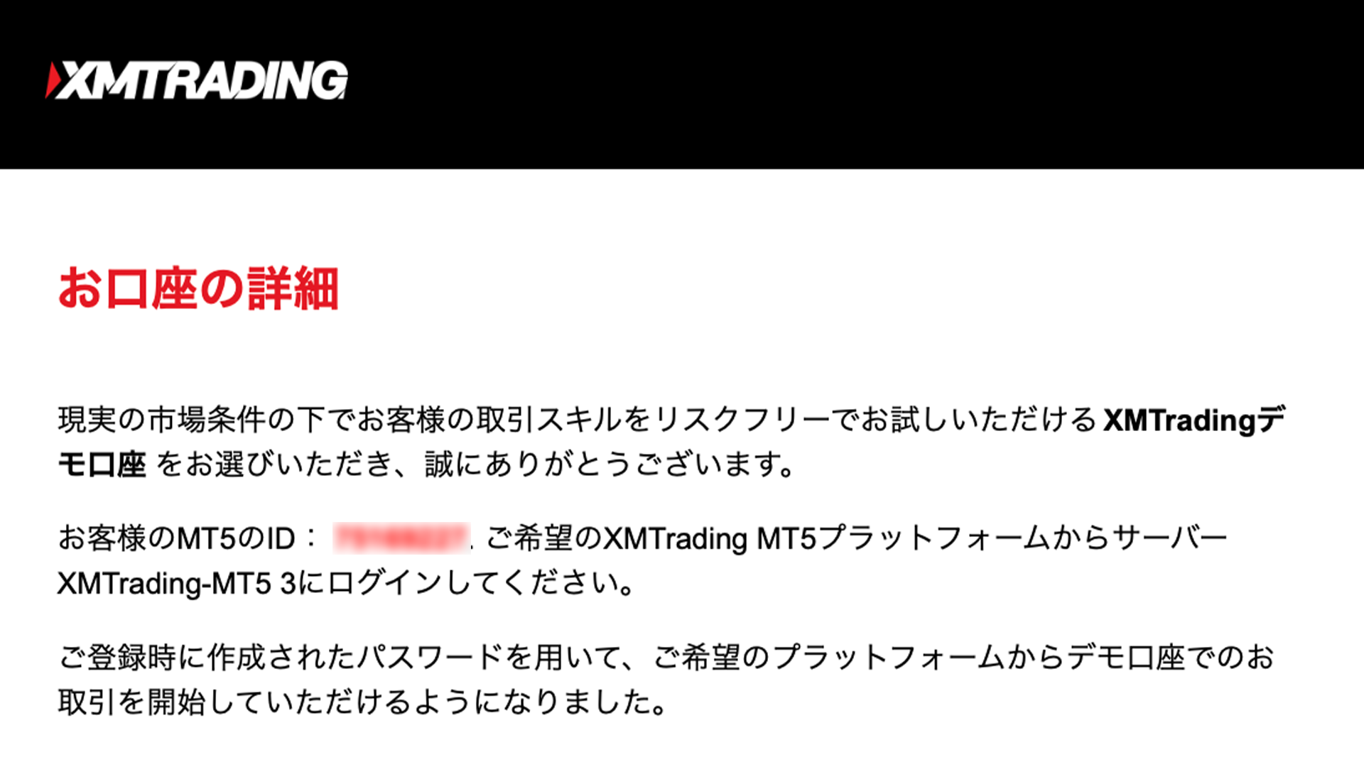 XMから「新規取引口座がご利用可能となりました」というタイトルのメールが届きます。