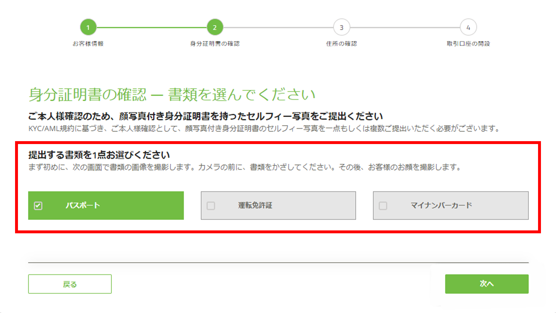 認証方法を選択したら、それぞれ指示に沿って身分証明書をアップロードします。
