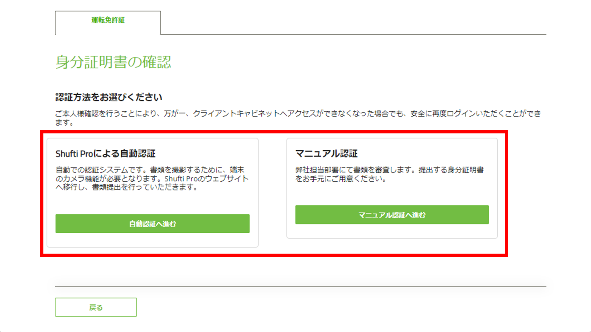 続いて、身分証明書の認証方法を選択します。