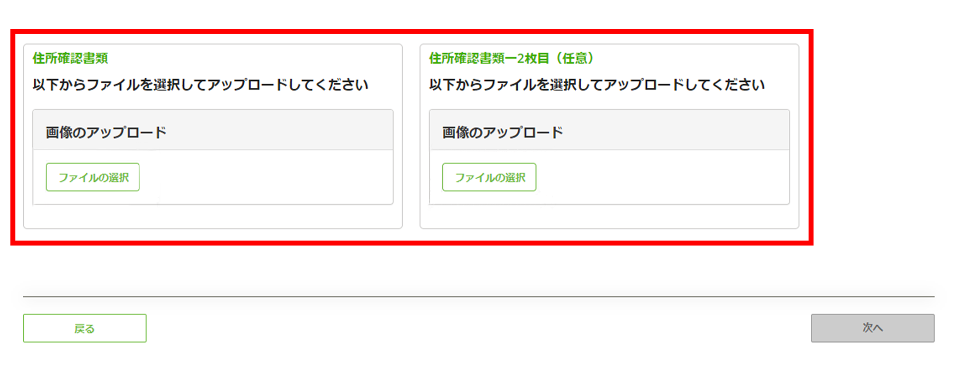 続いて、住所確認書類をアップロードします。