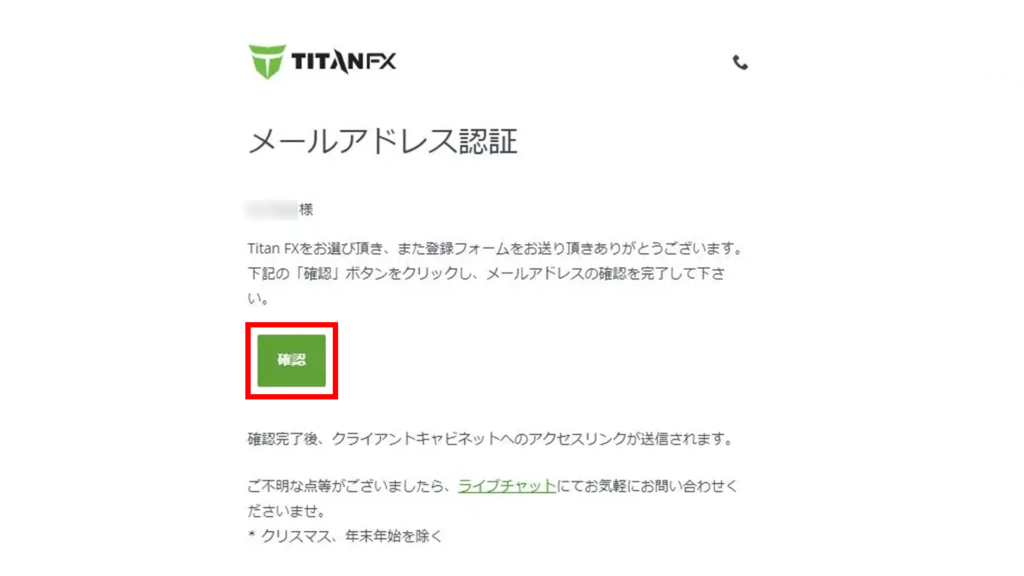 登録したメールアドレス宛てにTitan FXからメールが届きます。